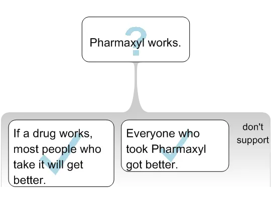 This was meant to be a reason to believe that the drug Pharmaxyl works. The problem with it is that it doesn't give us enough information to conclude whether Pharmaxyl works or not. If the people who didn't take Pharmaxyl also got better, then Pharmaxyl made no difference - the people who took it would have got better anyway.
