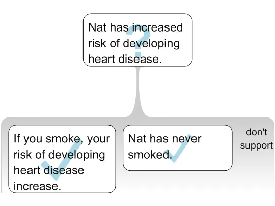When you have evaluated this reason, you evaluate the strength of the reason above, given the level of support or opposition below it. (Note that the same rules apply for objections - they aim to oppose another claim - so you must evaluate how well they do this).