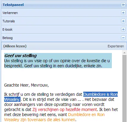 De functies Betoog Opzetten en Betoog Schrijven gebruiken