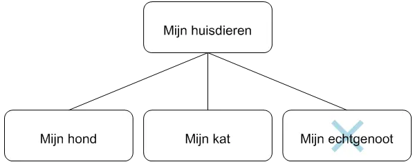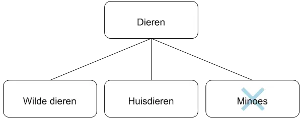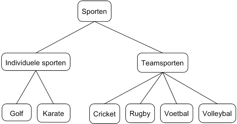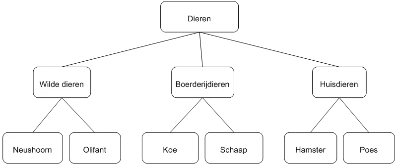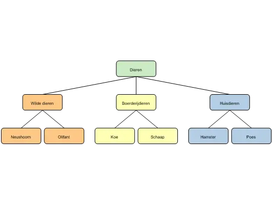 Zie items die naast elkaar zijn gegroepeerd in een schema als behorend tot hetzelfde niveau. Zie het voorbeeld ‘Dieren’ hierboven.