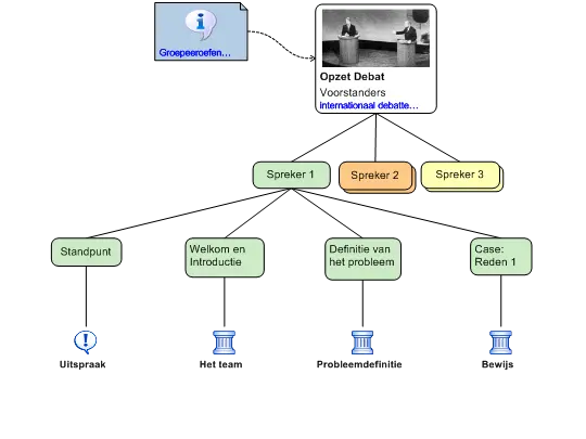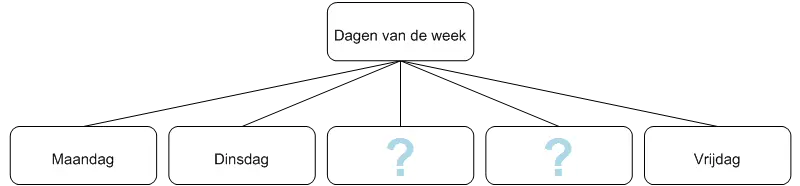 Met dit type schema kunt u brainstormen, groeperen en een hiërarchie van ideeën opzetten. Dit is weliswaar geen redeneerschema maar u kunt er categorieën met niveaus in onderbrengen die uitgaan van een algemeen idee of concept en zo naar specifiekere ideeën toewerken.