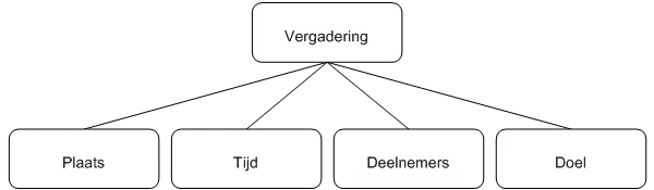 Het hoofdonderwerp, concept of algemene categorie hoort in het bovenste vak en met elke laag eronder wordt de grotere categorie in kleinere groepen, concepten of sub-categorieën onderverdeeld. Uw voorbeelden komen doorgaans in de onderste laag.
