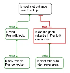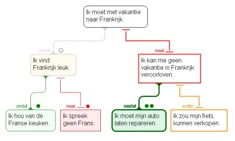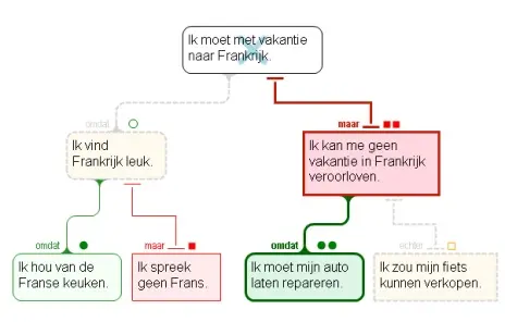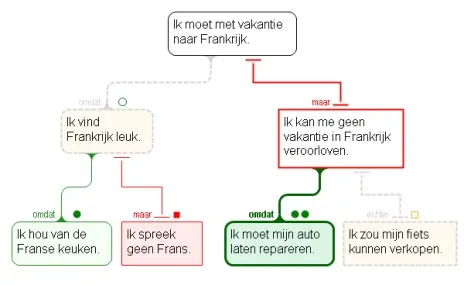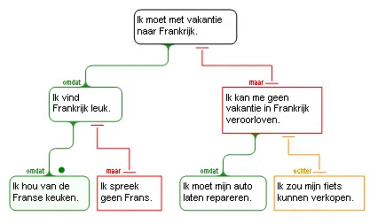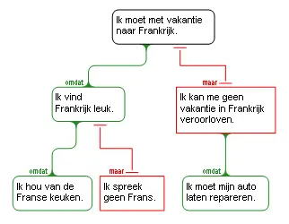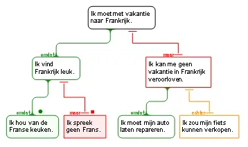 Stel dat ik me afvraag of ik nu wel of niet naar Frankrijk zal gaan met vakantie en een redeneerschema wil maken om tot een beslissing te komen: