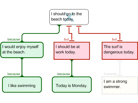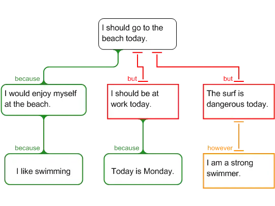 A Reasoning map in Rationale enables you to do basic argument mapping - a visual way to understand an argument. In a Reasoning map, you treat each reason and objection as a single sentence.