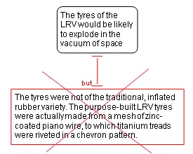 The tyres of the Lunar Roving Vehicle have also been brought into question, as many think they would be likely to explode in the vacuum of space. Again, a simple bit of homework reveals that the tyres were not of the traditional, inflated rubber kind. The purpose-built LRV tyres were actually made from a mesh of zinc-coated piano wire, to which titanium treads were riveted in a chevron pattern. [8.5]