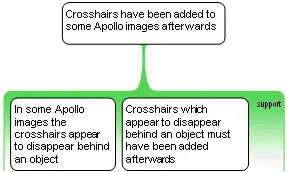 In some Apollo images the crosshairs appear to disappear behind an object. Some see this as evidence that the crosshairs have been added afterwards. [7.2]