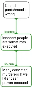 That many people are convicted and subsequently found to be innocent isn't direct evidence for the view that capital punishment is wrong, it instead supports the claim that innocent people are sometimes executed. We couldn't put the reason boxes around the other way: the fact that innocent people are sometimes executed doesn't supply any evidence at all for the claim that many convicted murderers later turn out to be innocent (in fact it is completely irrelevant!).