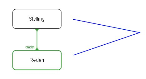 Om een schema van een reden te maken, zetten we de reden en de bewering in vakken, die we met elkaar verbinden. Dit is een mogelijke manier: