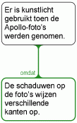 De schaduwen op de Apollo-foto’s wijzen verschillende kanten op, wat erop wijst dat er kunstlicht is gebruikt toen deze werden genomen. Daarom zijn deze genomen in een studio op aarde. [Gebaseerd op 5.2]