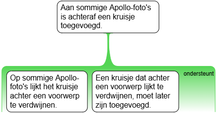 Op sommige Apollo-foto’s lijkt het kruisje achter een voorwerp te verdwijnen. Volgens sommige mensen is dit bewijs dat de kruisjes pas later zijn aangebracht. [7.4]
