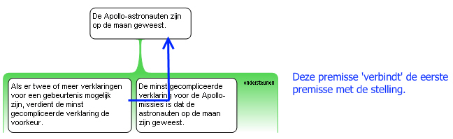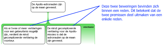 Als beide premissen waar zijn, heb je een reden om aan te nemen dat de Apollo-astronauten op de maan zijn geweest. Als een van de twee echter onwaar is, is de andere op zich niet voldoende. De premissen werken dus samen.