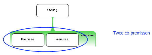 Meerdere premissen die samenwerken als onderdeel van één reden of bezwaar worden ook wel co-premissen genoemd. Een co-premisse verstevigt de connectie (‘co-nnectie’) tussen de andere premisse(n) en de stelling.