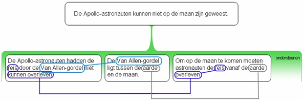 - elk belangrijk woord of concept in tenminste twee verschillende beweringsvakken voorkomt;