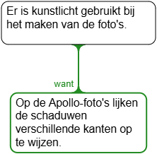 Er is kunstlicht gebruikt bij het nemen van de Apollo-foto's, daarom moeten de foto’s in een studio op aarde zijn genomen. [Gebaseerd op 5.2]